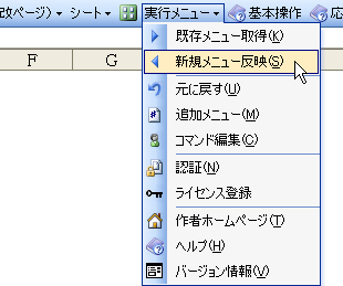 4)「実行メニュー」→「新規メニュー反映」を選ぶ